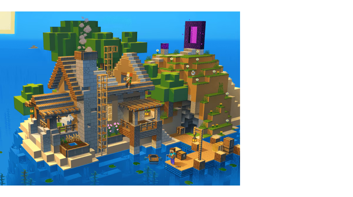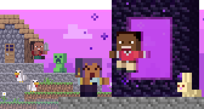 您可以使用Windows平台的基岩版,与移动设备无缝联机,共享跨平台游玩的乐趣。 | 您可以在移动设备上与 Windows 平台的基岩版跨平台联机,共享游戏乐趣。 |